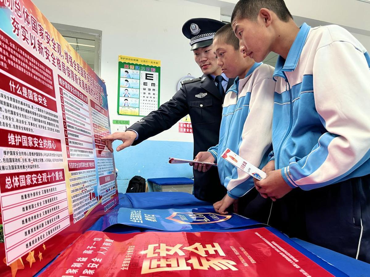活动中,民警通过现场讲解、摆放宣传展板、发放宣传资料等方式向在校学生普及“什么是国家安全”、“信息网络怎样安全防范”以及国家安全法律小常识等方面开展授课,并结合青少年心理和认知教育进行一一解读。