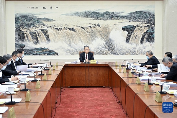 4月14日下午,十四届全国人大常委会第二次委员长会议在北京人民大会堂举行。赵乐际委员长主持会议。新华社记者 殷博古 摄