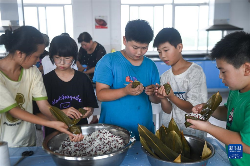 6月8日,学生们在传统习俗课上学习制作香囊。
