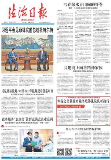 《法治日报》记者了解到,近年来,广仲积极打造仲裁工作现代化,推动仲裁国际化、数字化和智能化,引领世界互联网仲裁的发展,其制定和发布的“广州标准”已获46家境外仲裁机构和超过150家国内仲裁机构认可。值得关注的是,广仲办理的涉外案件,无一宗在境外被撤裁或不予执行,仲裁文书获得包括美国、中国香港等越来越多境外法院认可执行。