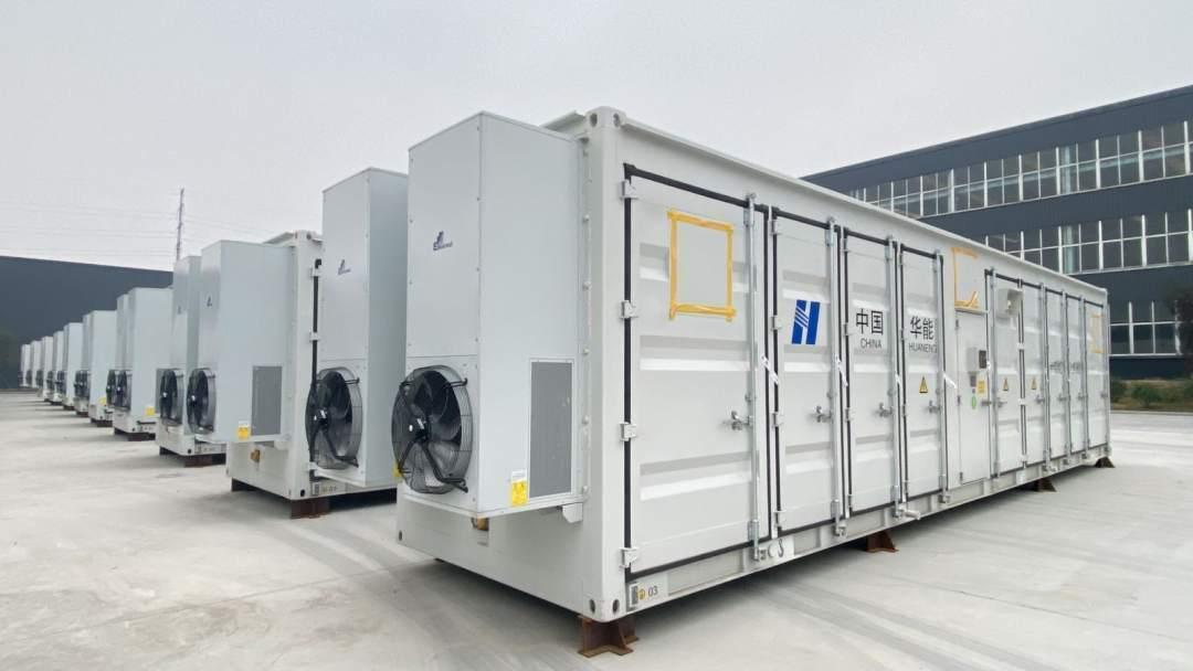 齐鲁储能谷零碳智慧产业园的储能车间外摆放整齐的储能集装箱