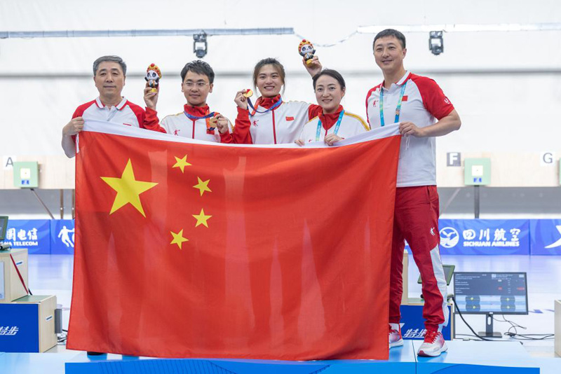 新华社成都8月2日电(记者黄耀漫、王春燕、田光雨)成都大运会射击项目2日收官。充满悬念的赛制、实力相当的对阵、中国队的机会,这些元素组合在一起,令当天的两场团体决赛显得格外刺激。最终中国队选手顶住压力,包揽10米气步枪和10米气手枪混合团体两枚金牌,为他们的成都大运会之旅画上圆满的句号。