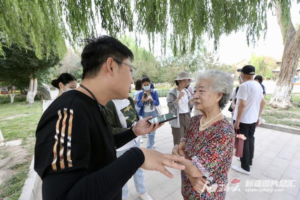 8月30日,全媒体报道团队记者采访在哈密河国家湿地公园漫步的市民。天山网-新疆日报记者 李瑞摄