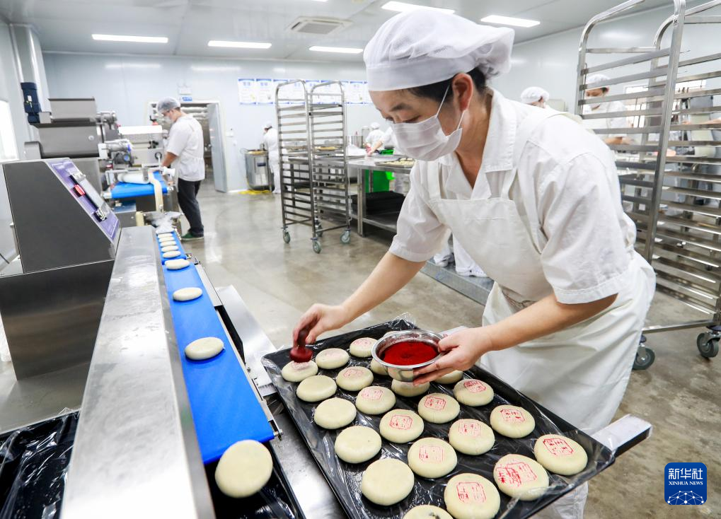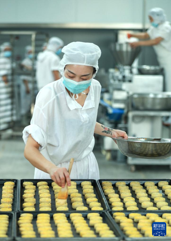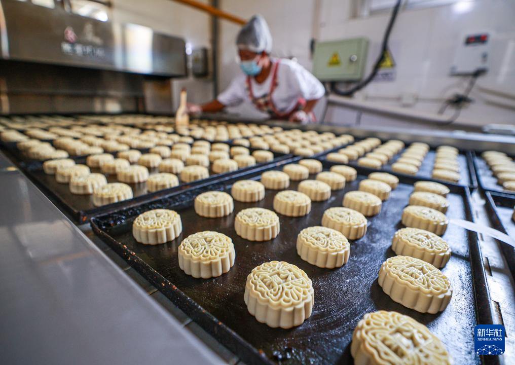 中秋节临近,各地月饼加工企业忙着生产月饼,供应节日市场。