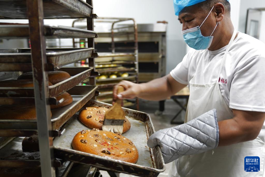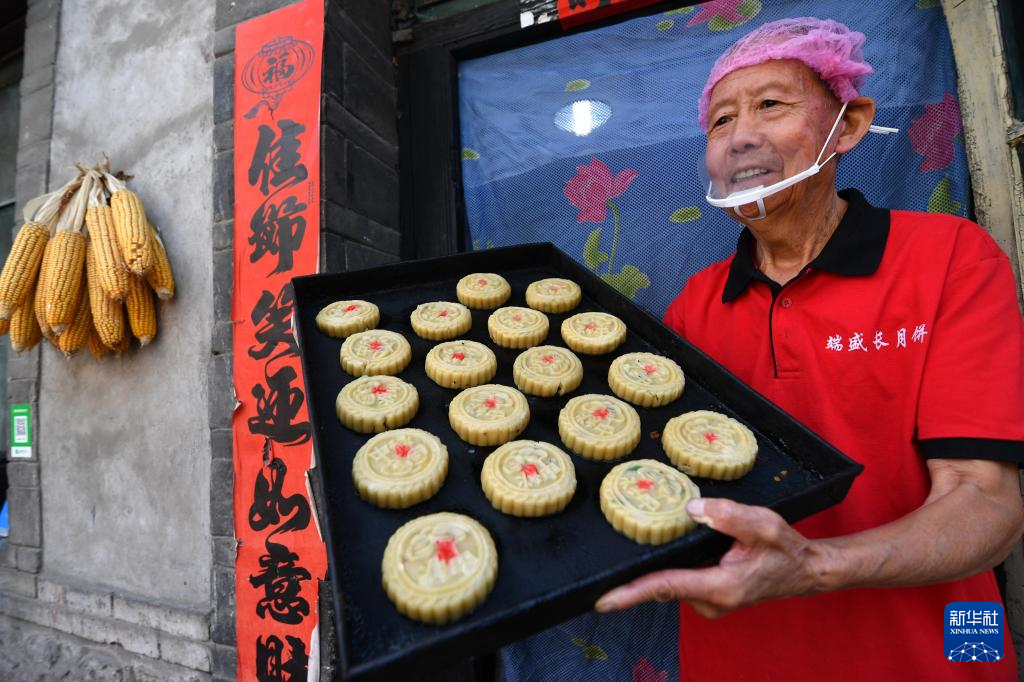 9月20日,在河北省石家庄市井陉县天长镇的一家手工月饼作坊里,老师傅准备烤制月饼。