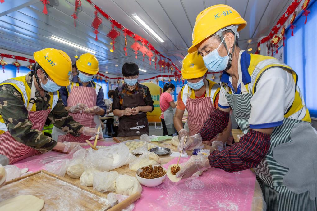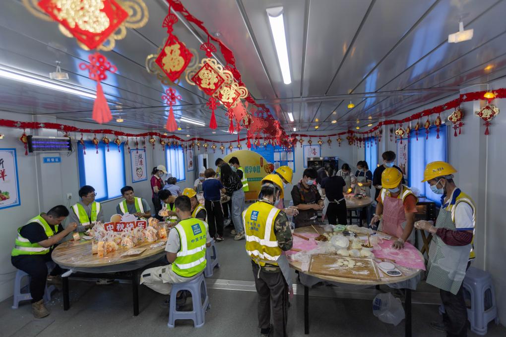 9月26日在项目工友服务站拍摄的迎中秋活动现场。