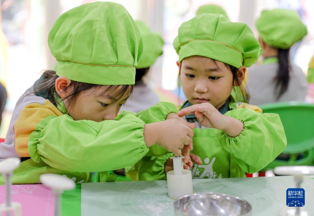 9月26日,江苏省南京市一家幼儿园的小朋友在学习制作冰皮月饼。