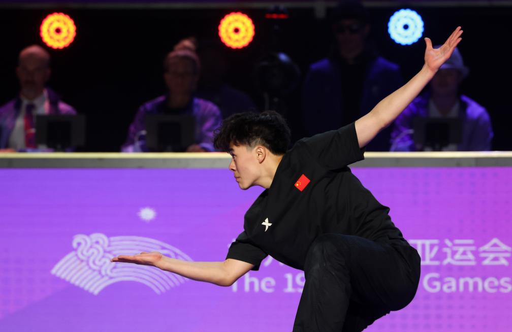 一串腾空与旋转的动作之后,亓祥宇在最后时刻选择用一个最简单的方式结束了比赛——他单手拍击地面之后,以托举的姿态,让手臂随着音乐从最低处缓缓抬升。