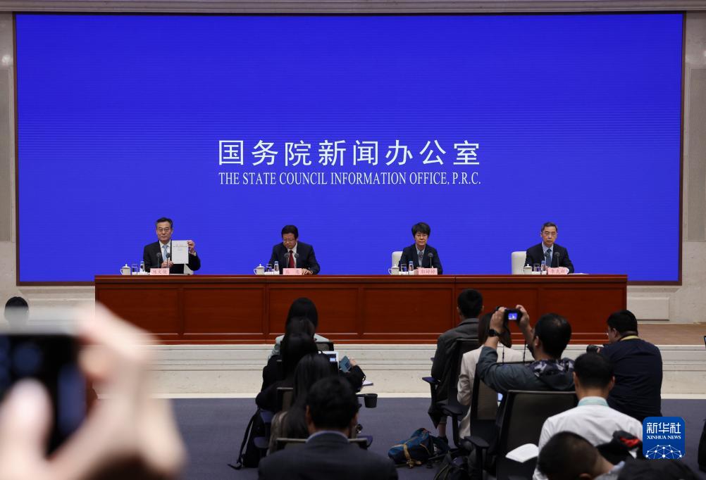 10月10日,国务院新闻办公室在北京举行新闻发布会,发布《共建“一带一路”:构建人类命运共同体的重大实践》白皮书,请国家发展改革委副主任丛亮、商务部副部长郭婷婷、外交部国际经济司司长李克新介绍白皮书有关情况,并答记者问。新华社记者 金立旺 摄