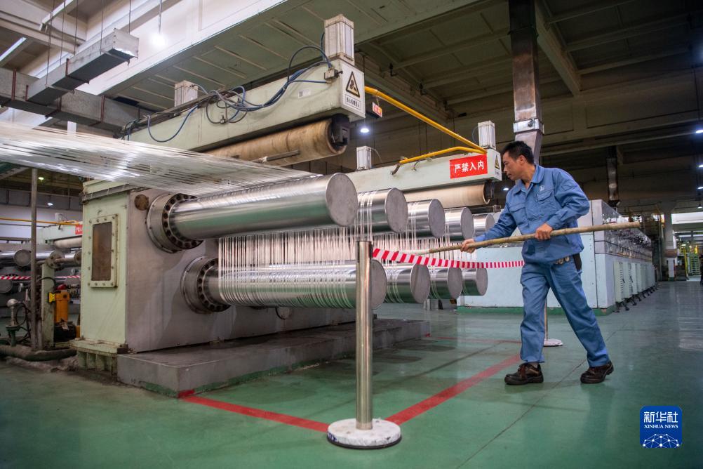 10月17日,在中国石化集团重庆川维化工有限公司,工作人员在生产线上工作。