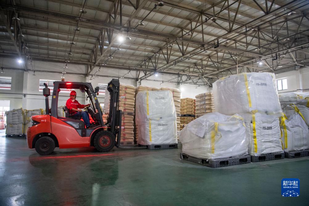 10月17日,在中国石化集团重庆川维化工有限公司,工作人员在将以乙炔为原料生产的化工产品进行打包装车。
