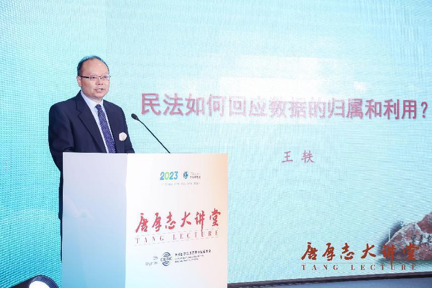 中国人民大学副校长、贸仲仲裁员王轶以“民法如何回应数据的归属和利用”为题开展主旨演讲。他介绍了数据的含义和性质,援引民法典阐释了民法上数据的内涵与外延,剖析了数据承载的人身利益、财产利益和民法回应的难题,重点分享了他在数据承载利益分配问题上的真知灼见。他表示,建构数据基础法律制度是法学界的使命,数据立法过程中要注意立法权、执法权和司法权的配置。