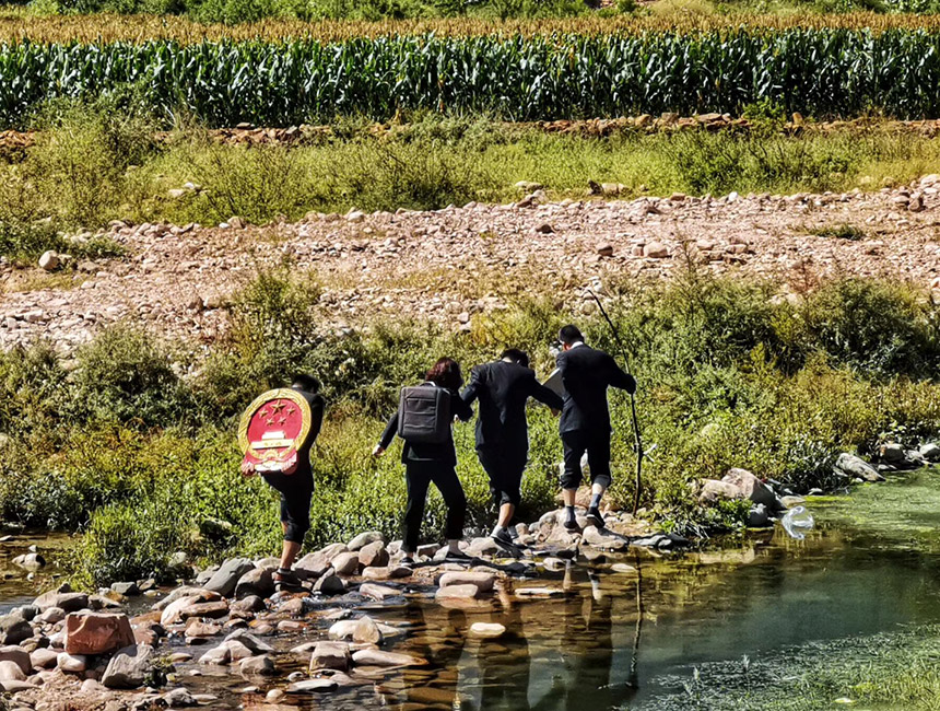白塔人民法庭工作人员送法下乡。魏振敏摄