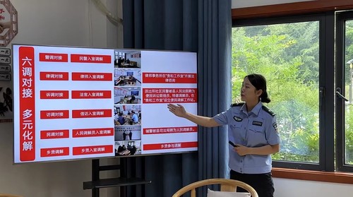 “传统群众工作手段主要是依靠人民调解、行政调解、司法调解三调联动,而我们创立的‘贵和’工作法,推行警调对接、访调对接、律调对接、诉调对接、民调对接、乡贤调对接的多元化解‘六调对接’制度,辅警人员聘任为人民调解员。”刘哲先说。