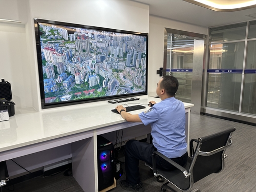 涪陵区公安局警航飞控中心开展全区三维图像建模,助力推进警用地理基础信息三维影像化。人民政协网记者王慧文 摄
