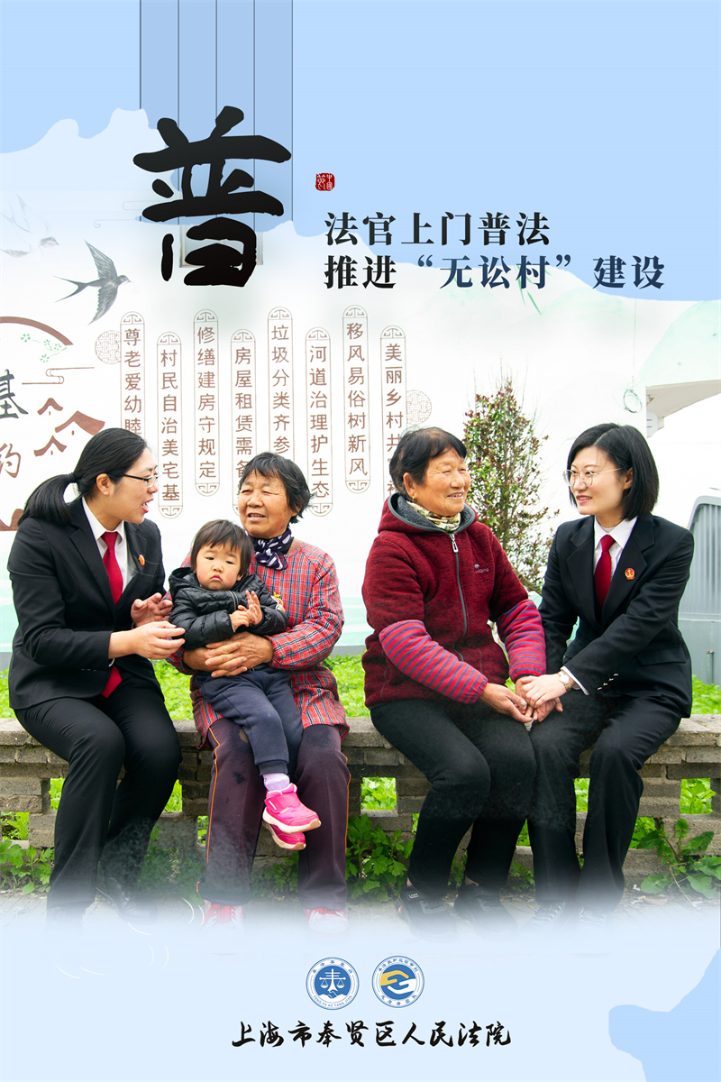 在上海市奉贤区金汇镇周家村,上海奉贤法院法官为老百姓上门普法,就辖区中多发的宅基地、婚姻家庭、继承纠纷进行讲解,并提出预防措施,以实际行动助力“无讼村”建设。