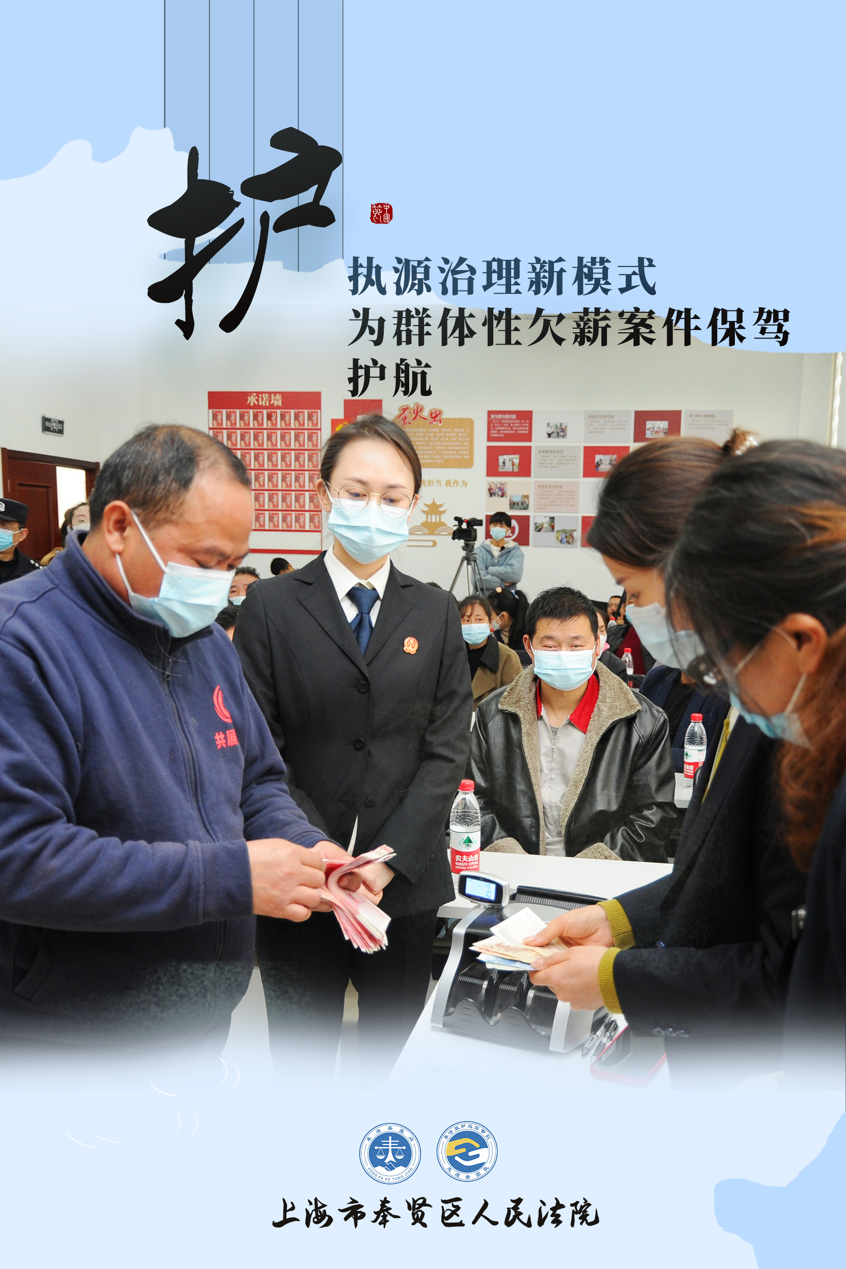 在“客堂间里护民生——奉贤法院工资发放活动”上,工人老徐终于拿到了自己半年多的工资。上海奉贤法院紧紧依靠地方党委、紧紧依靠属地政府、紧紧依靠当事人理解与支持,探索形成了“党委领导、多方支持、分工协作、形成合力”的执源治理新模式,使得这批涉130余名工人、总金额达510余万元的群体性欠薪纠纷得以妥善解决。