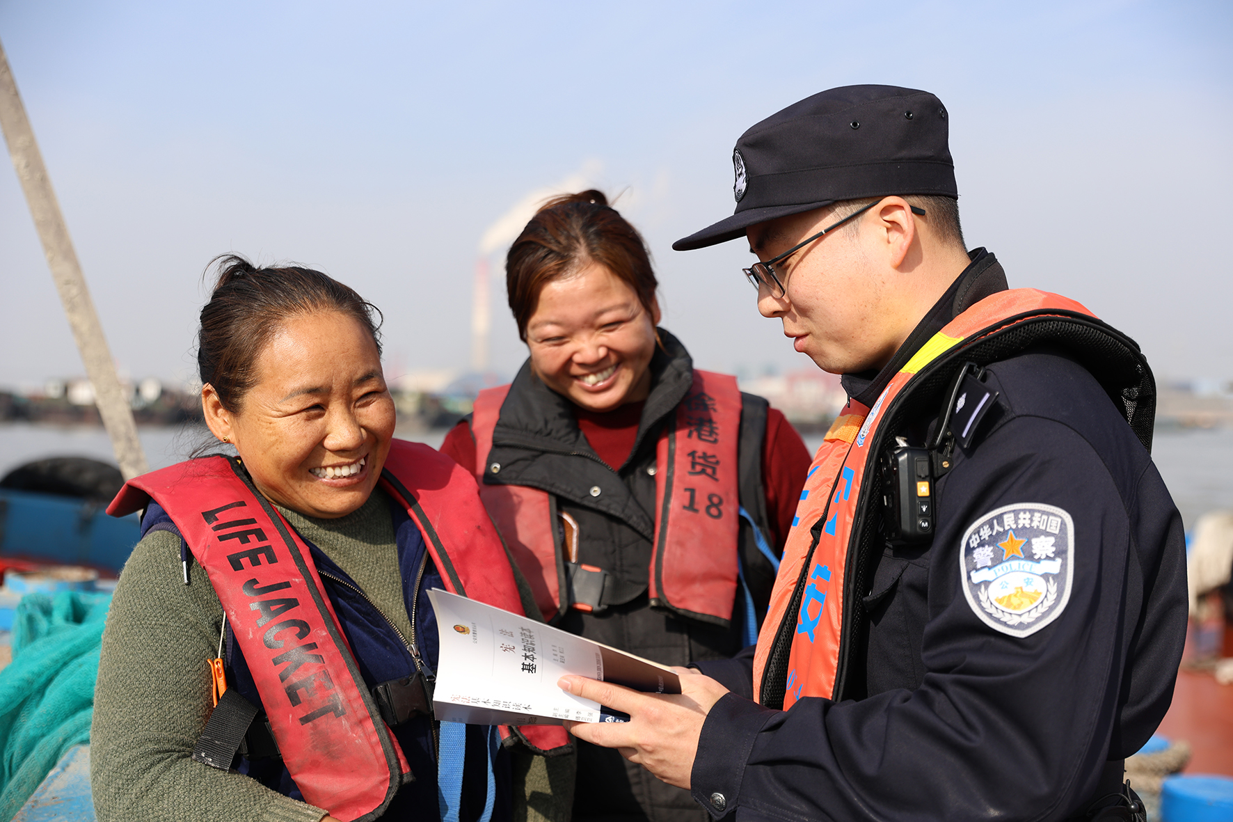 11月29日,长江航运公安局南通分局民警到辖区重点水域开展宪法宣传,强化船民法治理念。