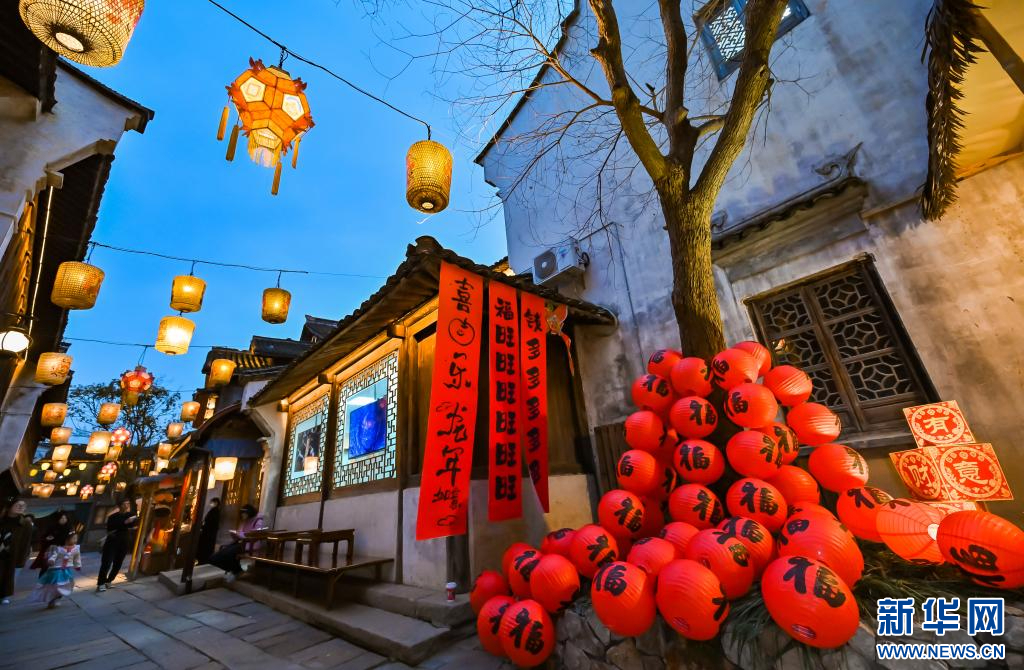 濮院寺湾街呈现出浓浓的新年氛围。新华网发 濮院时尚古镇供图