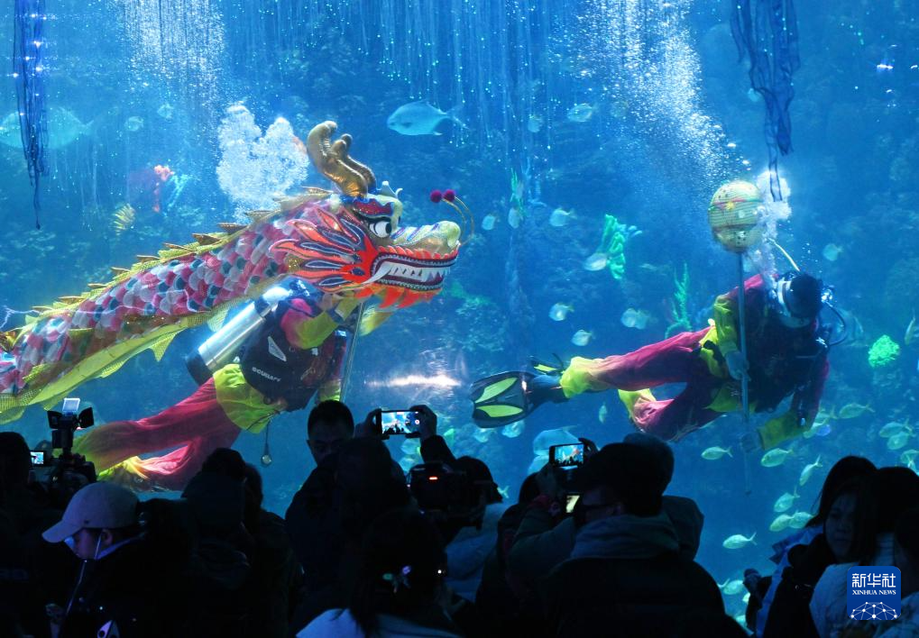 近日,青岛极地海洋公园推出“水下舞龙贺新春”民俗表演活动,迎接即将到来的新春佳节。