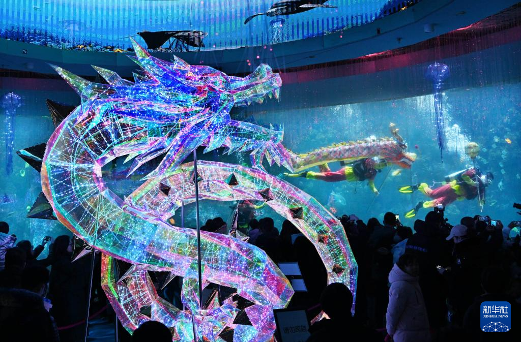 近日,青岛极地海洋公园推出“水下舞龙贺新春”民俗表演活动,迎接即将到来的新春佳节。