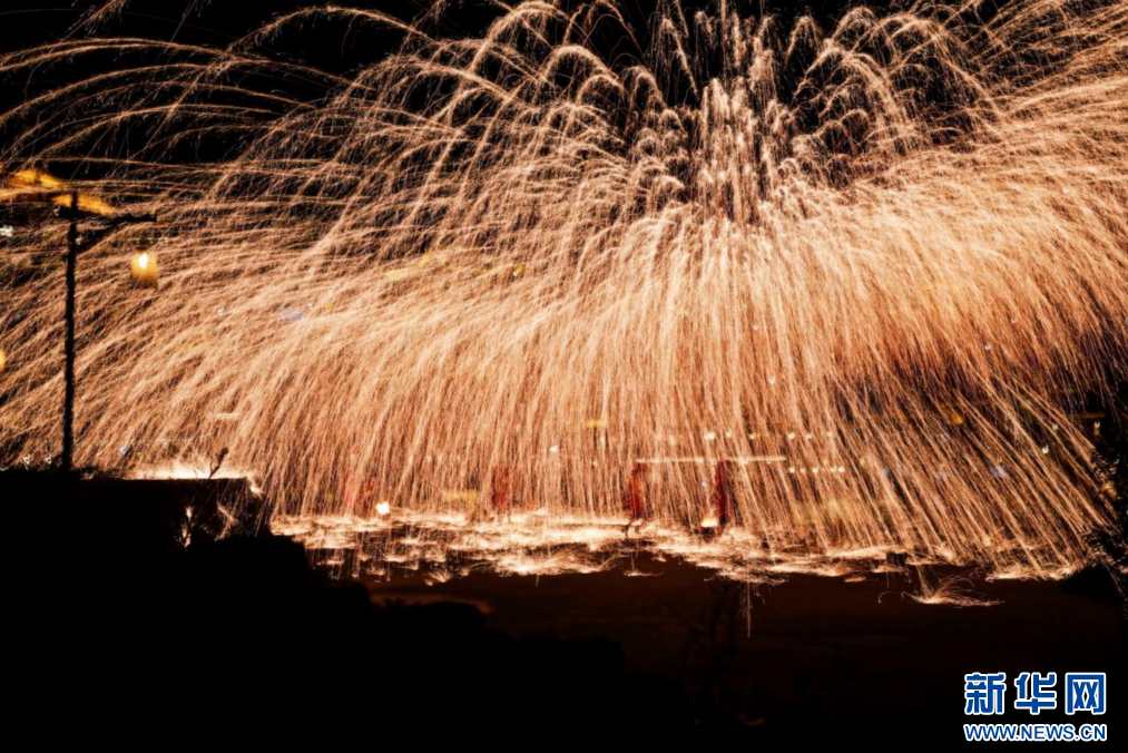 水上打铁花表演。新华网发 濮院时尚古镇供图