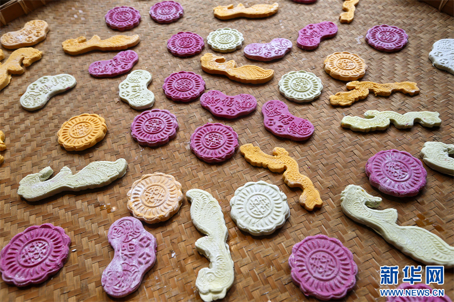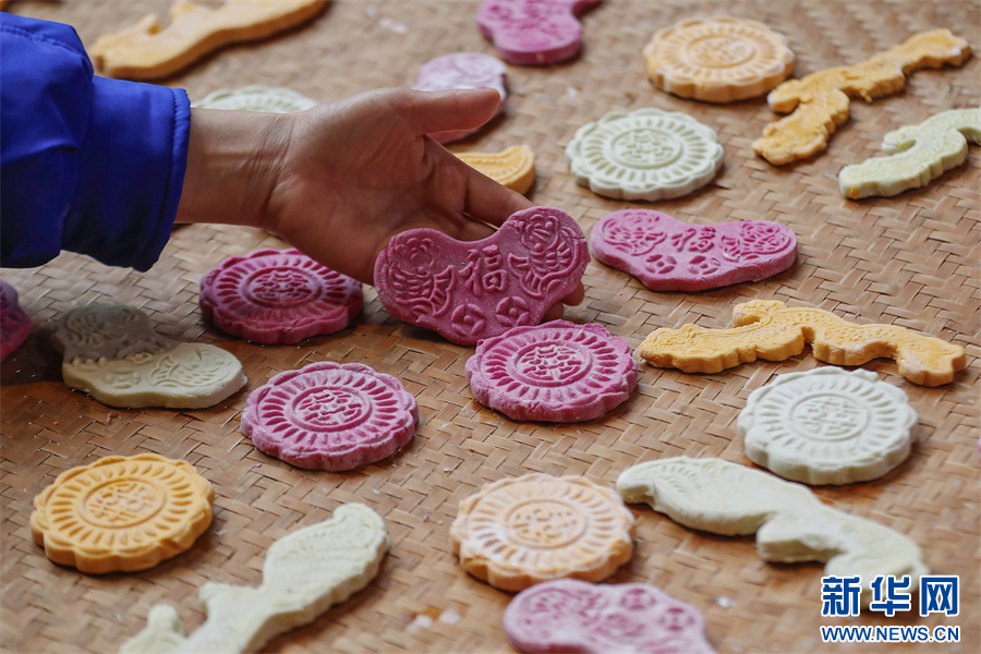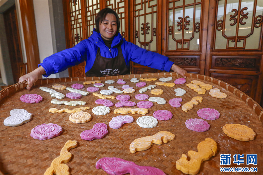 进入腊月,在安徽省黄山市徽州区潜口镇潜口村,村民用新鲜的南瓜、菠菜、火龙果等果蔬汁,制作出色彩各异、造型别致的徽州米粿,透出浓浓的年味,迎接新春佳节。新华网发(施亚磊 摄)