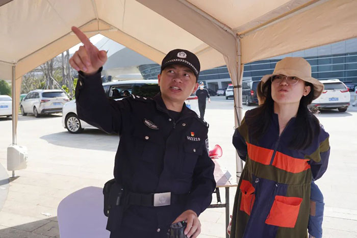 “用心服务游客,擦亮服务窗口。在做好景区安全维稳工作的同时,对待游客要热心、暖心,要让游客感受到警察就在身边。”儋州市公安局旅游警察支队有关负责人介绍。据了解,近期以来,儋州警方推动生态、旅游、森林警力深度整合、优化配置,为深化“平安景区”创建工程提供了有力组织保证。2024春节以来,无论游客是寻人、寻物、咨询还是突发疾病、遇险,民警总是第一时间出现在游客身边,将每一项帮助游客的事做实、做细、做到满意。