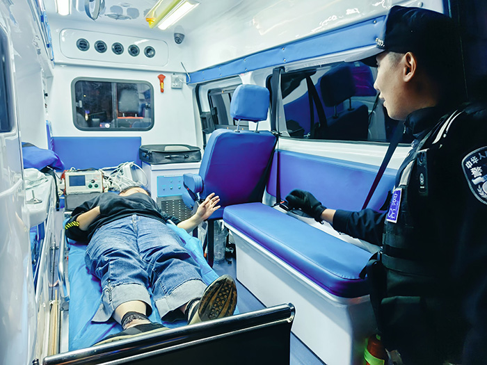 2月10日21时许,该派出所民警在执行夜间治安巡逻任务期间,发现一女子面色痛苦地躺在碧海大道某路段路边,民警随即下车上前询问,经了解,该女子出门到绿化带路边垃圾桶处扔垃圾时,不慎踩空,导致右脚崴到,疼痛难忍,甚至无法呼救。受伤的女子自述可能伤到右腿骨头,身体其他部位无受伤情况,民警立即联系120急救中心请求医护人员到场。