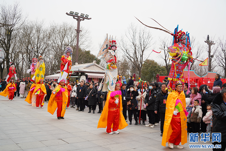 2月19日,在西安市临潼区大唐华清城广场,西安市临潼区举行非遗展演活动。艺人们现场展示了“背芯子”“马踏青器山”等非遗项目,迎接元宵佳节的到来,吸引了不少市民游客前来观看。(杨喜龙)