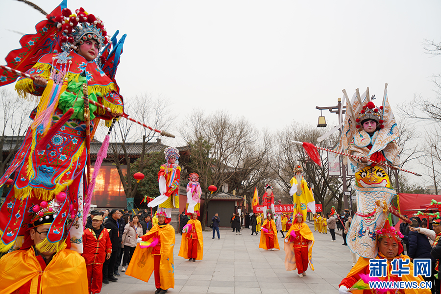 2月19日,在西安市临潼区大唐华清城广场,西安市临潼区举行非遗展演活动。艺人们现场展示了“背芯子”“马踏青器山”等非遗项目,迎接元宵佳节的到来,吸引了不少市民游客前来观看。(杨喜龙)