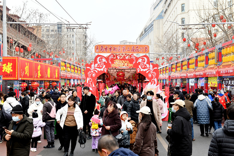 人民网青岛2月18日电 (记者 刘颖婕)萝卜糖球闹祥龙,民俗新风迎元宵。2月18日(正月初九),阔别四年的青岛新春第一节会“萝卜.元宵.糖球会”在市北区大鲍岛文化休闲街区正式拉开帷幕。
