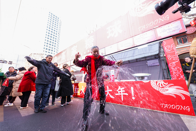青岛高家糖球非遗传承人表演糖球绝活——拔丝糖球。市北区宣传部供图