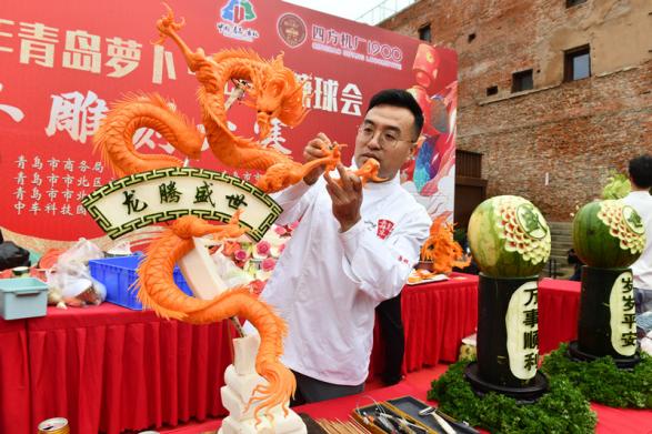 龙腾华夏,春满乾坤,16位知名的雕刻大师现场展示精湛的技艺,围绕“龙腾盛世”主题,用刻刀“刻画”出一个个精美的萝卜雕刻作品。一刀一划中,是造物者的鬼斧神工;一勾一勒间,是选手们精湛技艺的集中呈现。栩栩如生的雕刻作品让现场的市民游客大饱眼福。本届“萝卜雕刻大赛”获奖作品将于2月25日(农历正月十六)下午在中车四方机车公园举办的闭幕式上揭晓并颁奖。