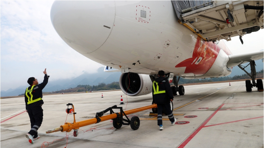 2024年2月16日,重庆,机场员工坚守岗位,为旅客春运返程保驾护航