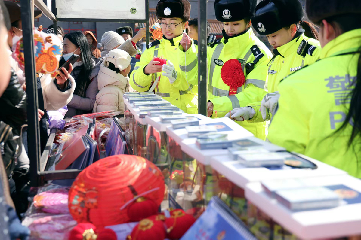 2月23日,辽宁省沈阳市公安局交通警察局沈河大队民辅警在人员密集场所、旅游景点开展以普及交通安全知识为主题的有奖猜迷活动,让居民们在欢庆元宵佳节的同时学习交通安全知识。