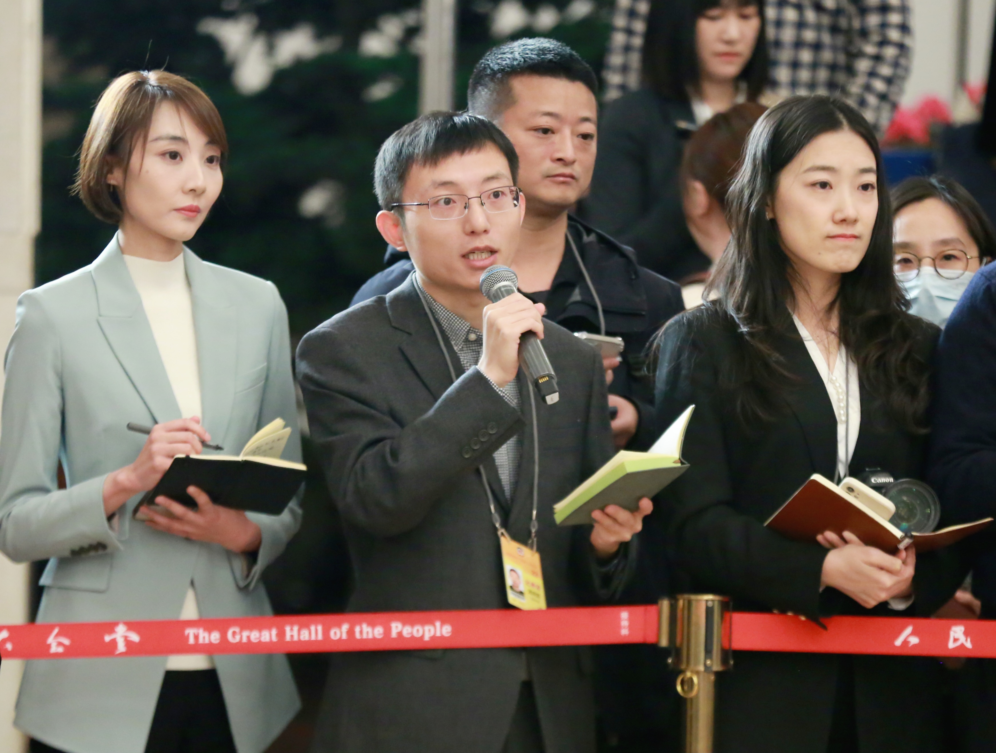 全国政协十四届二次会议3月4日举行首场“委员通道”采访活动。图为本报记者提问。 本报记者 徐伟伦 摄