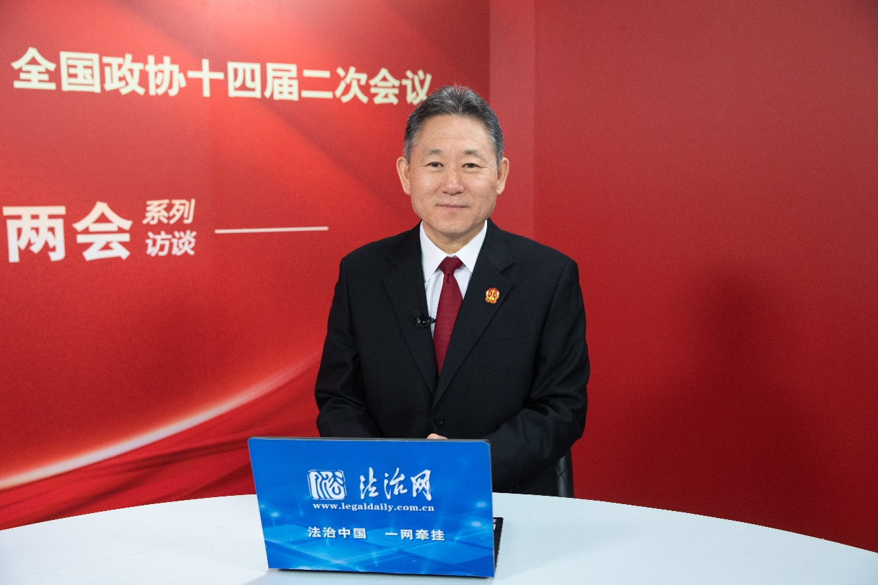图为最高人民法院环境资源审判庭副庭长李相波在法治网接受采访。韩毅 摄