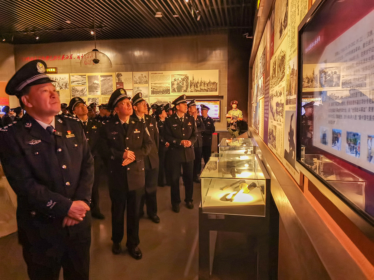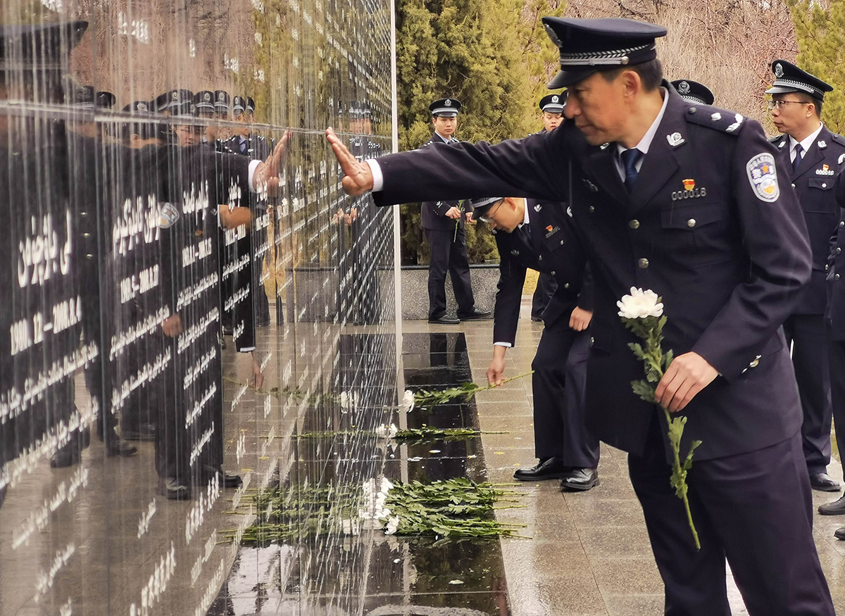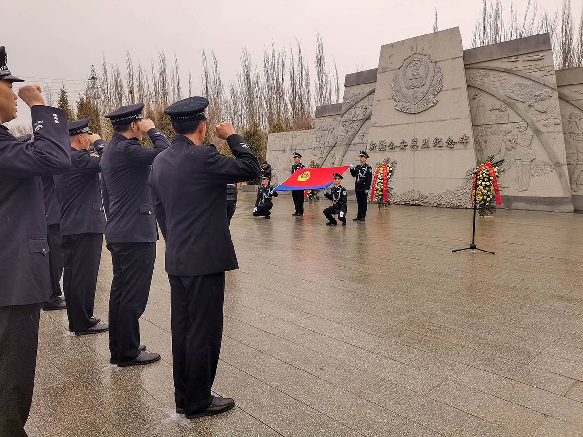 4月4日清明节,新疆生产建设兵团公安局组织民警来到乌鲁木齐市烈士陵园,开展“致敬公安英烈 激发奋进力量”主题党日活动。参加活动的民辅警警容严整,面向新疆公安英烈墙默哀、鞠躬、敬献鲜花,表达对烈士的敬意,缅怀英烈功绩、继承英烈遗志,追思他们忠诚于党、不畏牺牲、无私奉献的崇高革命精神,并在公安英烈墙前重温入警誓词。民警们还参观了烈士事迹陈列馆,追思烈士的英勇事迹。