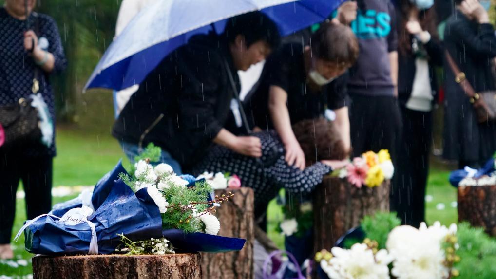4月1日下午,在湖北武汉市石门峰纪念公园,山丘绵延,鲜花翠柏,一场集体公益生态艺术葬正在举行。忽而雷声阵阵,春雨降下,挽歌轻轻奏响,青年舞者在雨中起舞。起灵、送行、落葬,亲友们手捧花束,目送22位逝者在此长眠。