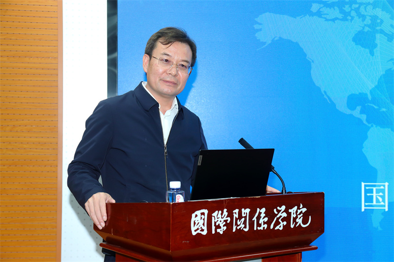 国际关系学院党委书记幸明军致辞。国际关系学院供图