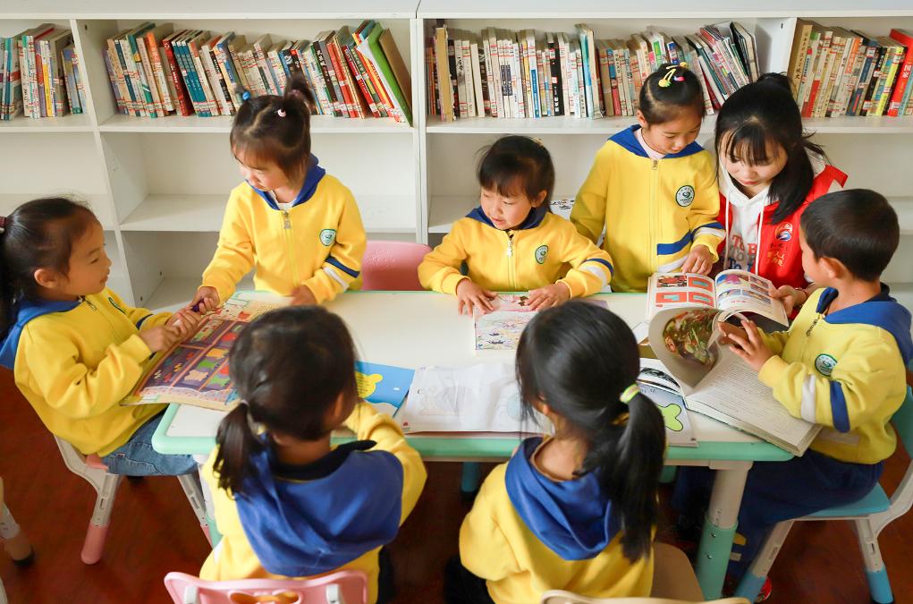 2024年4月30日,志愿者带领小朋友在贵州省黔东南苗族侗族自治州岑巩县大有镇大坪同心社区阅读。新华社发(徐雪 摄)