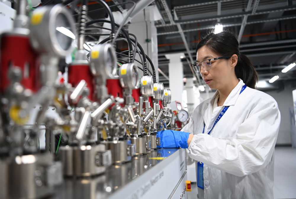 工作人员高巧利在陕西省榆林中科洁净能源创新研究院工艺放大平台实验室制备催化剂小试样品(2024年2月28日摄)。新华社记者 邹竞一 摄