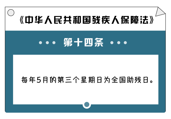 《中华人民共和国残疾人保障法》第十四条规定,每年5月的第三个星期日为全国助残日。
