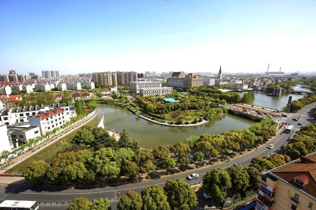 空中俯瞰高桥,长江之滨的滨江森林公园和黄浦江畔的新材料科创园交相辉映。万里长江口,千年古镇高桥正在高质量发展中焕发勃勃生机。