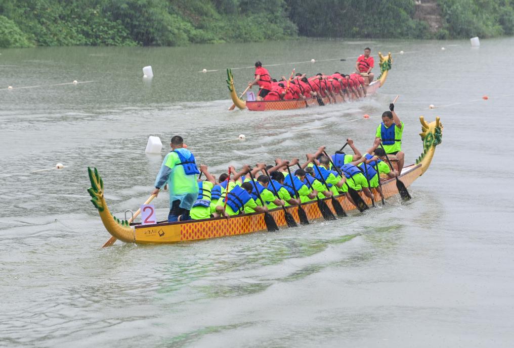 端午节临近,重庆市酉阳土家族苗族自治县龙潭镇举行划龙舟比赛,吸引来自湖北、重庆等地的15支队伍参加角逐。