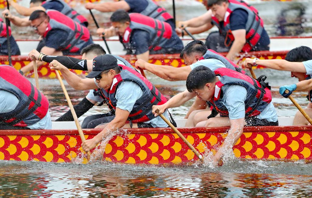 6月7日,河北省秦皇岛市海港区汤河,参赛选手参加秦皇岛第十届龙舟大赛。新华社发(曹建雄 摄)