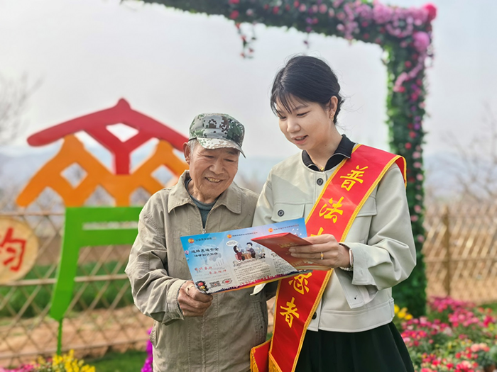 图为普法志愿者在“高山槐花节”活动现场为群众解疑释惑