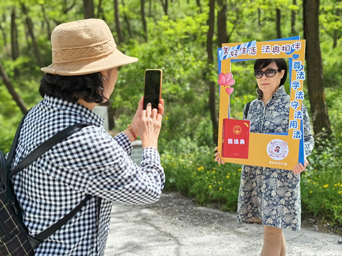 图为游客用民法典合影框拍照打卡