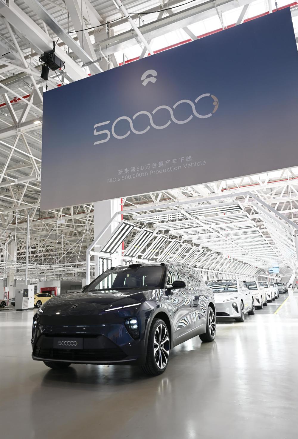 在安徽省合肥市新桥智能电动汽车产业园蔚来合肥第二工厂,蔚来第50万台量产车下线(2024年5月9日摄)。新华社记者 周牧 摄